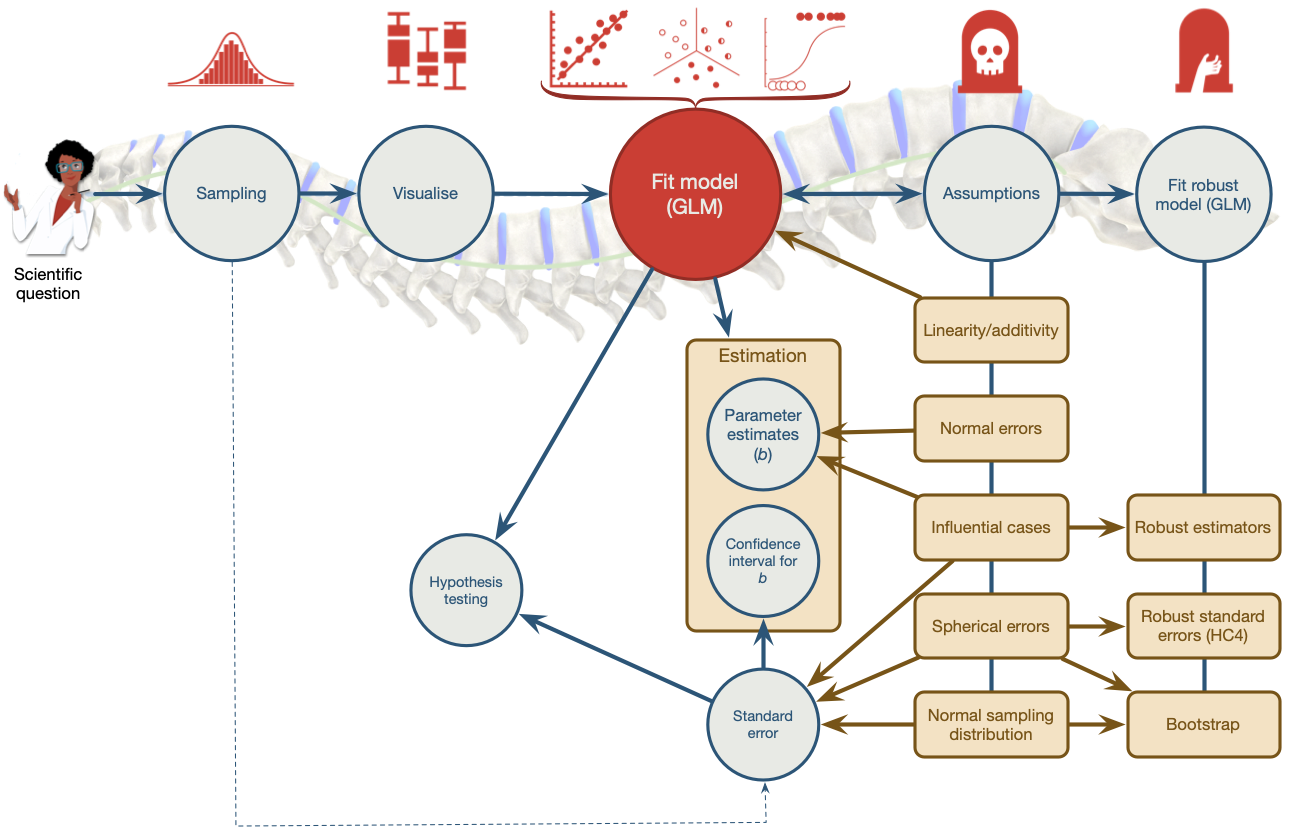 \[ \begin{aligned} \text{QoL}_i &= \beta_0 + \beta_1\text{Days}_i + \varepsilon_i \\ \varepsilon_i &\sim N(0,\sigma^2) \end{aligned} \]