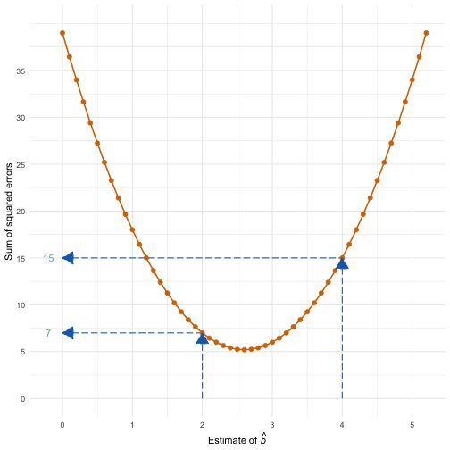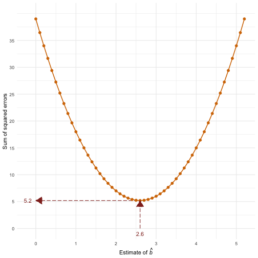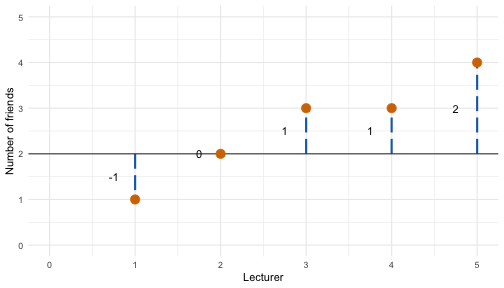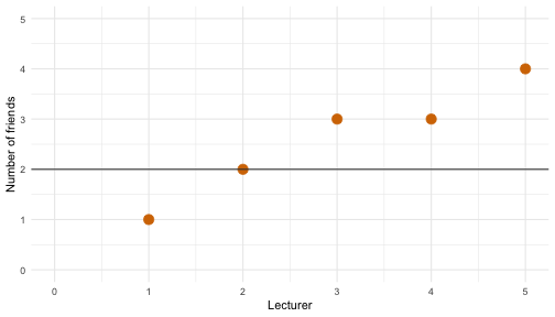 ] .pull-right[ <!-- --> ] --- ## Guess 1: `\(\hat{b}_0\)` = 2 .ong_dk[ $$ `\begin{aligned} \text{friends}_i &= \hat{b}_0 + \text{error}_i \\ \text{error}_i &= \text{friends}_i - \hat{b}_0 \end{aligned}` $$ ] .pull-left[