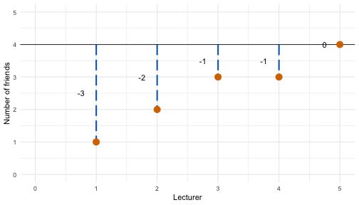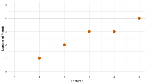 ] .pull-right[ <!-- --> ] --- ## Guess 2: `\(\hat{b}_0\)` = 4 .ong_dk[ $$ `\begin{aligned} \text{friends}_i &= \hat{b}_0 + \text{error}_i \\ \text{error}_i &= \text{friends}_i - \hat{b}_0 \end{aligned}` $$ ] .pull-left[