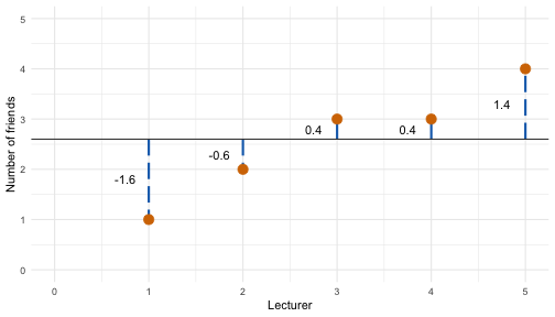 ] .pull-right[ <!-- --> ] --- class: center  --- class: center <!-- --> --- class: center <!-- --> --- class: center <!-- --> --- ## OLS estimate: `\(\hat{b}_0\)` = 2.6 .ong_dk[ $$ `\begin{aligned} \text{friends}_i &= \hat{b}_0 + \text{error}_i \\ \text{error}_i &= \text{friends}_i - \hat{b}_0 \end{aligned}` $$ ] .pull-left[